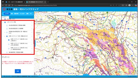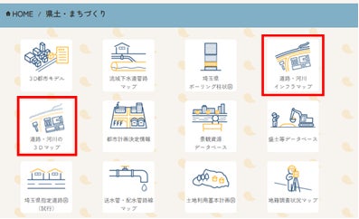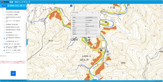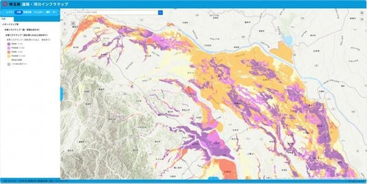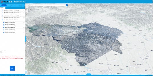 このたび、「埼玉県GIS」に掲載している「道路・河川インフラマップ」と「道路・河川の3Dマップ」に新たに水害リスクマップや土砂災害警戒区域等のハザード情報と山間部や県管理河川の3次元点群データを追加しました。