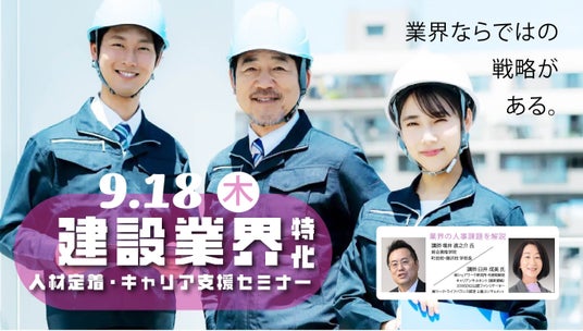 このような背景から、本事業は総合資格学院と共催し、「建設関連企業・団体などの事業主・人事担当者向け人材定着とキャリア支援セミナー」を実施します。