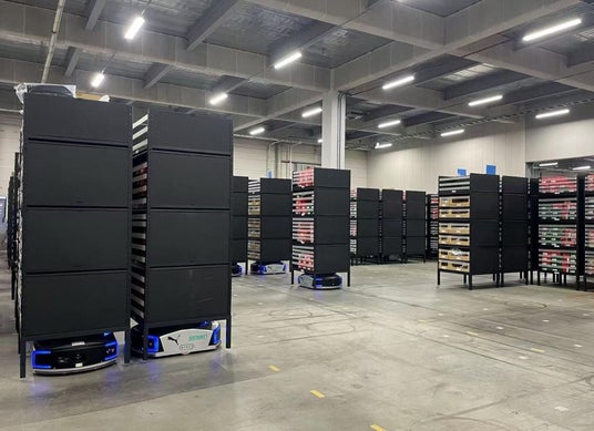 ギークプラスが提供する自動棚搬送ロボット「EVE」は、倉庫内におけるピッキング作業を効率化する自動化ソリューションです。商品の入った棚やコンテナを自動でピッキングステーションまで運び、作業員はその場で商品を取り出すのみで作業が行えることで、移動する手間が省け、作業スピードや正確性の向上を実現できるプロダクトです。