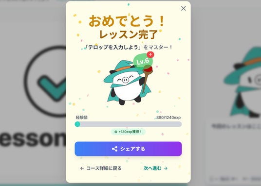 レッスンをクリアすると経験値を獲得し、レベルアップします!