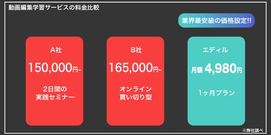 合同会社エディル(本社:東京都港区)は、本日9月1日に、業界最安級の価格で動画編集が学べるオンライン学習サービス「エディル」を正式リリースしました。