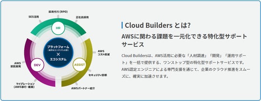 クラウドビルダーズ株式会社(本社:東京都港区赤坂、代表取締役:池西耕平)は本日、企業のAWS導入における「人材調達」「開発」「運用」をワンストップで支援する「AWS特化型ワンストップ・クラウド導入支援」の提供を開始し、その詳細を紹介する専用Webページを公開しました。