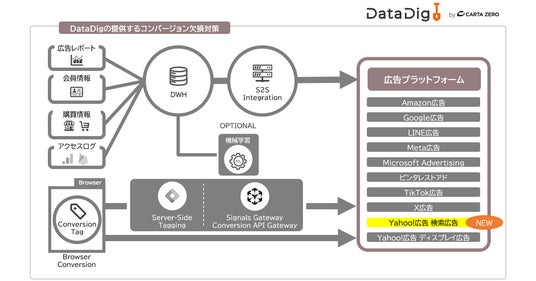 株式会社CARTA ZERO(本社:東京都港区、代表取締役CEO:宇佐美 進典、以下「CARTA ZERO」)は、クッキーレスに対応したデジタルマーケティング支援サービス「Data Dig」において、LINEヤフー株式会社が2025年9月10日に提供を開始したYahoo!広告 検索広告のコンバージョンAPIへの対応を、同日より開始したことをお知らせいたします。