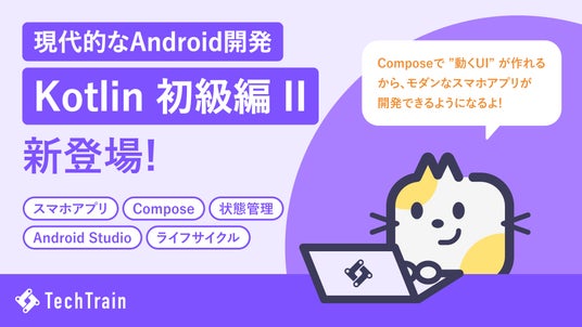 株式会社TechBowl(本社:東京都千代田区、代表取締役CEO:小澤政生)は、同社が運営するプログラミング学習プラットフォーム「TechTrain」において、Compose対応した Androidアプリ開発の基本を学べる「Android Kotlin 初級編 II」コンテンツをリリースしました。