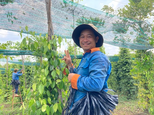 また、現地従業員の心と体の健康を守ることも大切と考え、人権、労働条件の保護を目的とした国際認証SA8000を取得。お客様、ベトナムの大地、従業員の三方の健康を守りつつ、コショウ栽培を未来へつないでいきたいと考えています。