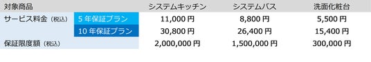 対象製品 : システムキッチン、システムバス、洗面化粧台