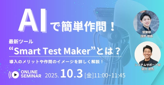 CBT・IBT試験等の試験運営業務をメイン事業とする株式会社CBTソリューションズ(本社:東京都千代田区、代表取締役社長:野口功司、以下CBTS)は、2025年10月3日(金)に無料セミナー「AIで簡単作問!最新ツール”Smart Test Maker”とは?」を開催いたします。