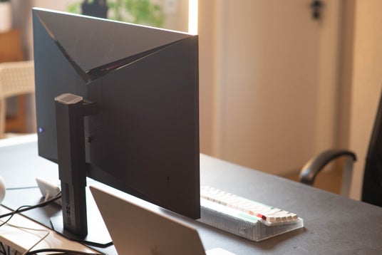 勝つためには、快適さも武器の一つです。高さ調整・チルト・スイベル対応のエルゴノミックスタンドにより、姿勢に合わせたセッティングが可能に。首や肩に余計な負担をかけることなく、長時間でも安定してプレイに集中できました。さらにスリムベゼルの洗練されたデザインが、デスク環境そのものを引き締めます。