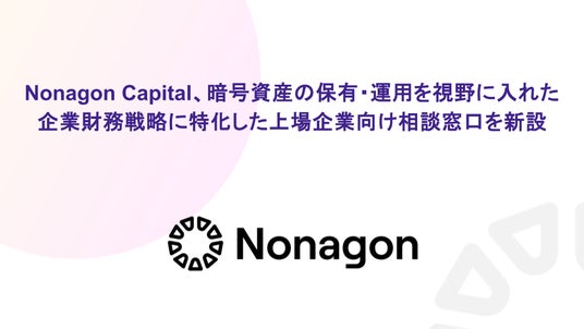 暗号資産・ブロックチェーンのスタートアップへ投資を行うベンチャーファンド・Nonagon Capital(本拠地:米国サンフランシスコ・ベイエリア、代表職務執行者:岡本 和士)は、暗号資産を利用した企業財務戦略の立案・実行を検討する日本の上場企業を対象とする「相談窓口」を新設したことをお知らせいたします。