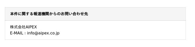 利用料金やお申込に関する詳細は、AIPEXコーポレートサイトのお問い合わせページよりご連絡をお願いいたします。[https://aipex.co.jp/]