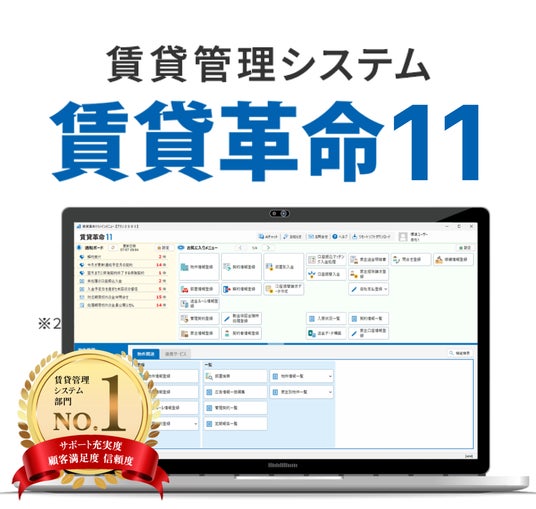 「賃貸革命11」は、日本情報クリエイトが提供する不動産管理業務支援ソフト「賃貸革命」シリーズの最新版です。これまで全国の不動産管理会社様にご利用いただいてきた「賃貸革命」の使いやすさを継承しつつ、現場の業務負担を減らすための最新機能を多数追加しております。