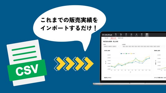 これまで蓄積してきた受注データをExcelやCSVファイルでアップロードすれば、その日から販売データの分析が可能になります。システム移行直後から過去実績を活用できるため、営業戦略や仕入れ判断に即座に役立てられます。