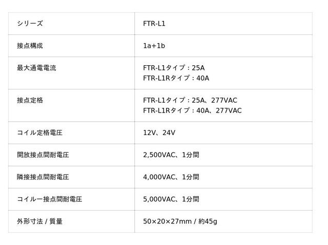 FCLコンポーネント株式会社(本社:東京都品川区、代表執行役社長:小松 健次)は、自動切替器向けのスリム型低背パワーリレーFTR-L1シリーズを開発し、エンジニアリング・サンプルのご提供を開始いたします。