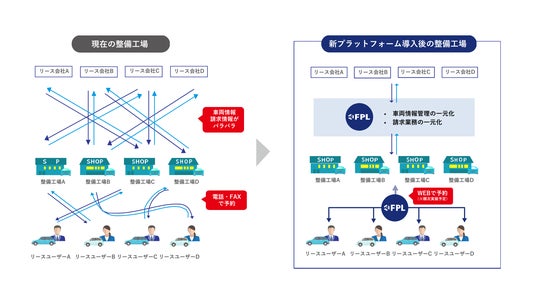 「FLEET PITLOCKシステム」は、車両情報や手続きをリース事業者やエンドユーザーと整備工場間で一元管理できるプラットフォームです。