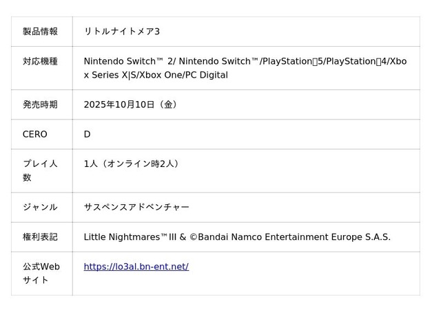 ■『リトルナイトメア3』公式サイトはこちら:https://lo3al.bn-ent.net/