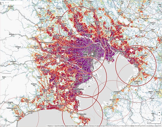 ・15km圏人口マップ:世界中の都市の15km圏人口を比べられる地図