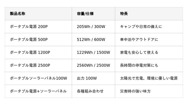 ■ 日本メーカーがお届けするポータブル電源の特長とラインナップ