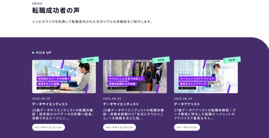 求人紹介だけでなく、学びや気づきを得られるキャリアメディア機能を強化しました。転職活動のノウハウだけでなく、データ・AI企業の現場インタビューや転職成功者のストーリーを掲載し、求職者が自身のキャリアを具体的にイメージできる仕組みを整えています。