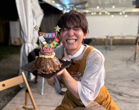 バーベキューもひと段落し、山下の誕生日を祝う企画が始まります。まずは似顔絵プレゼントのコーナー。蒼井と八代がその場で山下の似顔絵を描き披露すると、2人のイラストのクオリティの高さに盛り上がりました。続いては「山下大輝36個の魅力」というコーナー。蒼井と八代が山下の魅力を交互に挙げていきます。「かわいい」「かっこいい」といった王道から、蒼井は「番組のディレクターがかっこいい」、八代は「ジャンプした時のシルエットが綺麗」など、ユニークな視点での魅力も飛び出しました。しかし、あと10個を残したところでタイムアップの鐘が鳴り響き、惜しまれつつコーナーは終了。