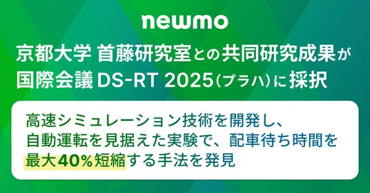 newmo株式会社(東京都港区、代表取締役 青柳直樹、以下newmo)は京都大学 学術情報メディアセンター 首藤一幸 教授と共同研究を行い、タクシーやライドシェアにおける配車の高速シミュレーション技術を開発し、それを用いて、乗客とドライバーのマッチング品質を大幅に向上させることに成功しました。