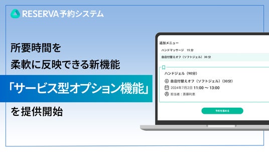 株式会社コントロールテクノロジーは、クラウド型予約管理システム「RESERVA(レゼルバ)」において、オプションに所要時間のあるサービスを設定できる新機能「サービス型オプション機能」を公開しました。本機能では、予約メニューに加えてオプションにも所要時間を設定でき、予約者が追加メニューを選択すると自動的に所要時間が反映されます。これにより、予約枠の調整や追加メニュー対応が容易になり、予約受付の効率化と売上向上を同時に実現します。