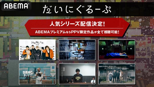さらに、だいにぐるーぷ公式サイトでPPV配信されていた8作品を一挙配信。ABEMAプレミアムなら全て視聴可能です。無料配信作品『Not Found』に関連する『Not Found -制作の記録-』や、『1週間逃亡生活-東京編-』の特別編『1週間逃亡生活 -逃亡者編-』、そして『賞金を手にした男に密着』など、制作の舞台裏や続編にあたる特別コンテンツをご覧いただけます。ぜひ併せてお楽しみください。