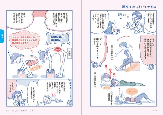 胸と股関節を中心に身体をほぐして、腰への負担をゆるめる。それが、腰ゆるめストレッチ! 腰痛治療の世界的名医・西良浩一先生のメソッドをマンガ&イラストでわかりやすく解説!