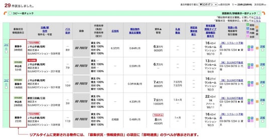 リアルタイム連携をした『SUUMO B2B』の画面イメージ