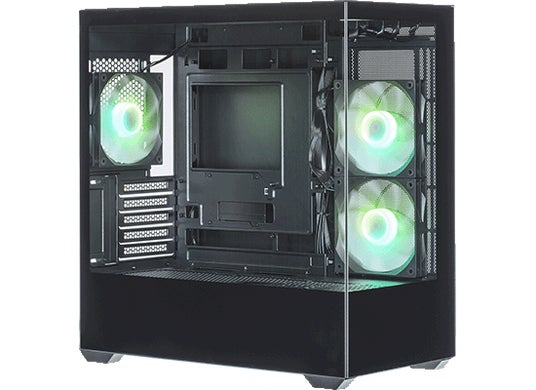 - 片面サイドとフロントがガラスパネルのピラーレスPCケースです。