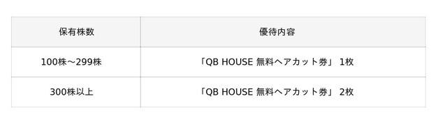 QB HOUSE 株主優待ページ:https://www.qbnet.jp/ir/preferential/