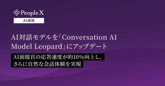 採用から活躍支援まで、AIで人事課題を解決する株式会社PeopleX(本社:東京都新宿区、代表取締役 CEO:橘 大地、以下:当社)は、当社が提供する対話型AI面接サービス「PeopleX AI面接」のAI対話モデルについて、「Conversation AI Model Leopard」へのアップデートを完了したことをお知らせいたします。