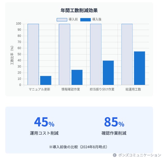 - 業務効率化とコスト削減:確認作業を85%削減、年間運用コストを45%削減
