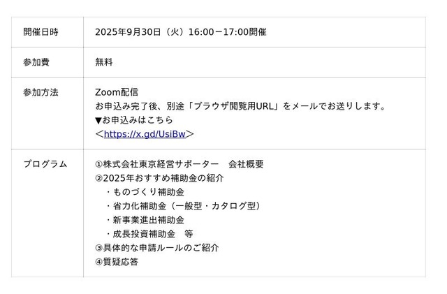 ウィルグループの総合人材サービスを手掛ける株式会社ウィルオブ・ワーク(本社:東京都新宿区、代表取締役社長:村上 秀夫)は、無料オンラインセミナー『製造業設備投資担当者向け 2025年秋おすすめ補助金の最新情報を一挙に紹介』を、2025年9月30日(火)に開催します。
