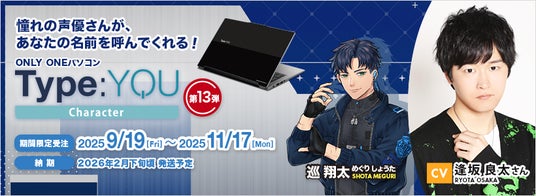 株式会社スマッシュコアエンターテインメント(本社:東京都千代田区、代表取締役:福池 功)は、自社が運営する『オンリーワンPCストア【スマッシュコア】』にて、2025年9月19日(金)より、声優オリジナルパソコンのキャラクターシリーズ【Type:YOU Character(タイプ ユー・キャラクター)】第13弾となる『巡 翔太』(CV:逢坂良太さん)の受注受付を開始いたしました。受付期間は2025年11月17日(月)までの期間限定となります。