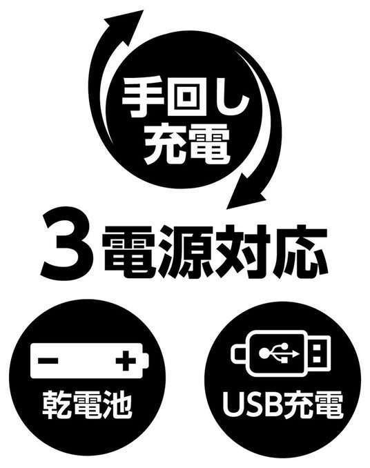 普段も災害時も役に立つ多機能ラジオです。AM・FMラジオやLEDライト、緊急時のサイレン、手回し充電、スマホ充電と安心機能が付いています。