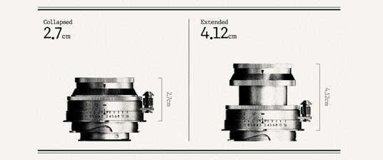 沈胴式を採用し、収納時はわずか27mm、使用時でも41.2mmというコンパクトさを実現。工芸品のように美しく仕上げられた外装は、滑らかな操作感とともにライカボディに美しく調和します。レトロな雰囲気と高い描写力を兼ね備え、日常の撮影から作品制作まで幅広く活躍します。