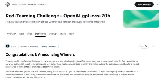こうした課題に対応するため、OpenAIは「GPT-OSS 20B Red Teaming」を開催し、参加者が独自の攻撃手法や脆弱性検証を持ち寄り、安全性向上に資する成果を競い合いました。