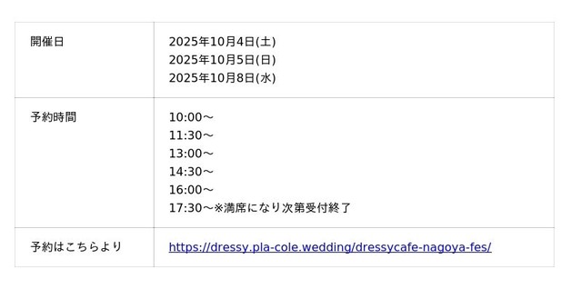 【10/4(土)5(日)8(水)限定開催】ウェディング初体験フェス in 名古屋