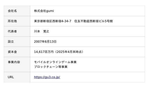 gumiは、「Wow the World! すべての人々に感動を」をMissionに掲げ、モバイルオンラインゲーム事業とブロックチェーン等事業の二つの事業を展開しています。モバイルオンラインゲーム事業では、『当社ゲームエンジン×IP』を軸とした収益性の高いタイトル開発を推進するとともに、開発受託にも注力しております。ブロックチェーン等事業では、ブロックチェーンゲーム等のコンテンツ開発、暗号資産を基盤にしたプラットフォーム構築、有力ブロックチェーンのノード運営、グローバルにおけるファンド投資等を行っております。