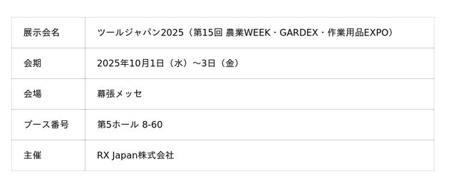 こうした国際的な実績を背景に、日本市場でのブランド認知と流通拡大を目指し「ツールジャパン2025」に初出展いたします。
