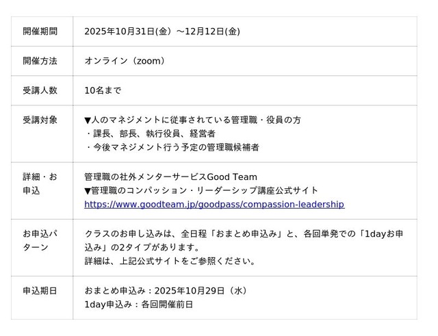 プログラム詳細:https://www.goodteam.jp/goodpass/compassion-leadership