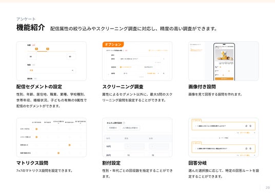 アンケート調査機能では、使いやすいUIUXを提供し、2,800万人規模のパネルと連携することで、24時間以内の回収率が76%と高い回収力を実現しています。