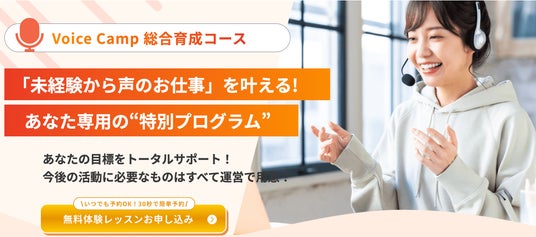 2025年9月、オンラインボイススクール「Voice Camp」では、“声を生かしたお仕事”を目指す方々に向けた『総合育成コース』を開講します。初心者の方にも安心してスタートしていただけるよう、スキル・プロフィール・実績のすべてを総合的にサポートする充実の内容をご提供いたします。