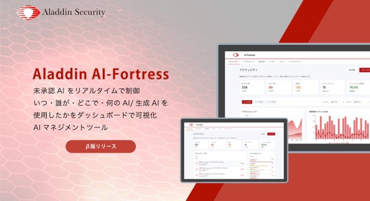 Aladdin Security株式会社(本社:京都府京都市上京区甲斐守町97西陣産業創造會館、代表取締役CEO:勘佐 圭吾)は、企業の生成AI利用を可視化・制御する新サービス「AI-Fortress」 を正式にリリースいたしました。