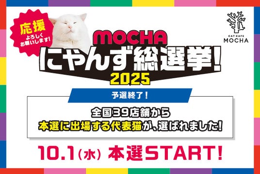 「猫と過ごす、豊かなひととき」をコンセプトとし、全国に猫カフェを展開するリポット株式会社(本社:東京都新宿区、代表取締役社長:守永圭治)は2025年9月25日(水)に予選となる各店舗総選挙の結果を発表し、2025年10月1日(水)より、「MOCHAにゃんず総選挙2025」本選投票をスタートいたします。