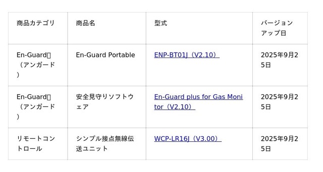 ※「ENP-BT01J」「En-Guard plus for Gas Monitor」「WCP-LR16J」を購入済みのお客様は、無償アップデートいたします。