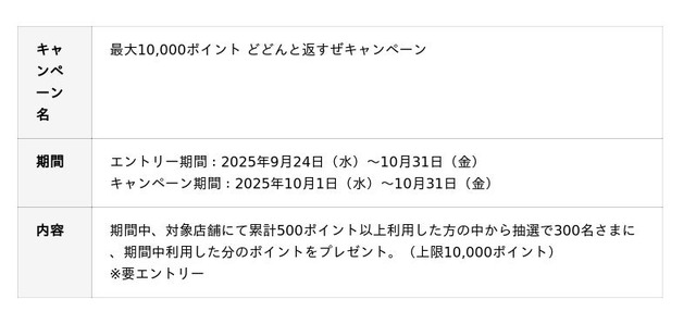 ポイント付与日:2025年11月中旬予定※当選者の発表はポイントの付与をもってかえさせていただきます。