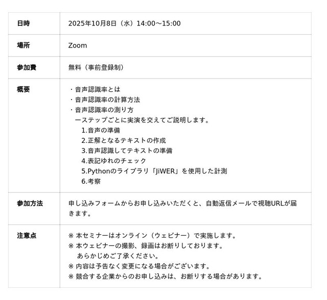 ・音声認識率について全く知識が無い状態で参加しましたが、計測時のポイントなど大変分かりやすいセミナーでした。