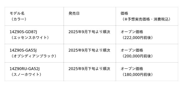 LGエレクトロニクス・ジャパン株式会社(代表取締役:孫 成周(ソン・ソンジュウ)、本社:東京都中央区)は、モバイルノートパソコンシリーズ「LG gram」において、14インチの「LG gram 14」新モデルとして、「14Z90S-GD87J」と「14Z90S-GA55J」、「14Z90RU-GA52J」の計3モデルを、2025年9月下旬より一部販売店にて順次発売します。