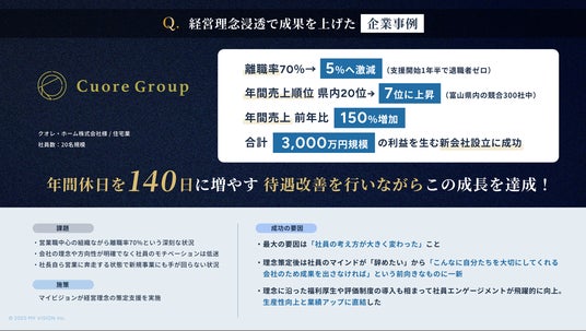 私たちは、理念に基づいて働くことが企業の未来と社員の幸せをつくると信じています。今後も全国の企業の“ビジョンに向かう組織づくり”に伴走してまいります。」